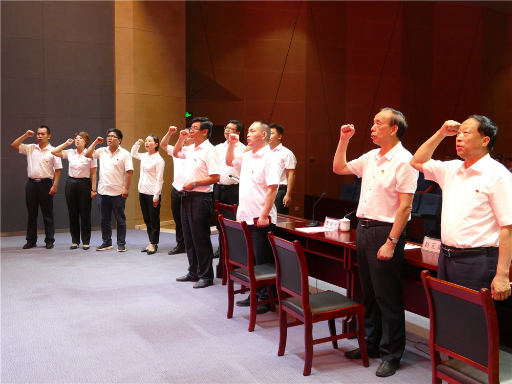 大會(huì)在雄壯的國(guó)歌聲中拉開(kāi)序幕。首先公司黨委委員、副總經(jīng)理郭日倉(cāng)作了《黨委工作報(bào)告》。報(bào)告總結(jié)了過(guò)去一年來(lái)的黨建工作,指出了黨建工作存在的不足,并提出了下一步工作的努力方向。公司黨委委員、鑄鍛公司副總經(jīng)理曹慶平宣讀《關(guān)于表彰2019年度優(yōu)秀共產(chǎn)黨員的決定》。大會(huì)為2019年度在公司各條戰(zhàn)線涌現(xiàn)出的10名優(yōu)秀黨員頒發(fā)榮譽(yù)證書;接著舉行新黨員入黨宣誓和老黨員重溫入黨誓詞儀式,全體黨員舉起右手,握緊拳頭,面向黨旗,莊嚴(yán)宣誓“我志愿加入中國(guó)共產(chǎn)黨,擁護(hù)黨的綱領(lǐng),遵守黨的章程……”,錚錚誓詞響徹會(huì)議室。